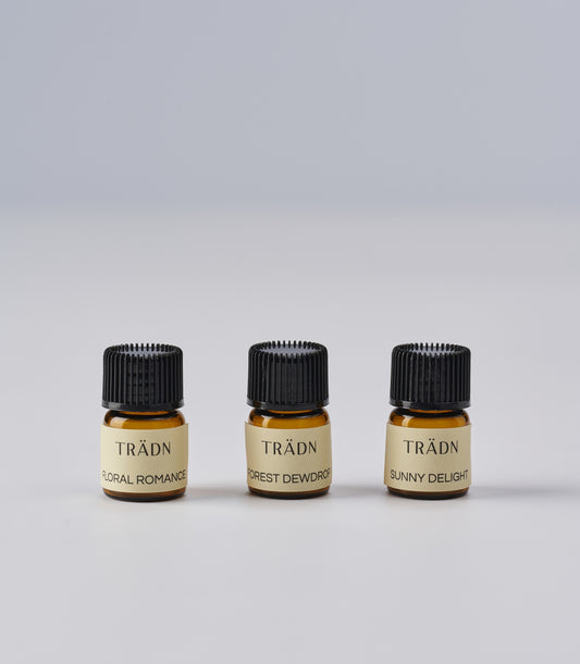 Trädn嚴選來自世界各地的植物,經由蒸餾、冷壓等萃取方式,讓花朵、木心、種子、草葉保留完整的植物精華及細膩香氣,用於薰香、嗅吸、泡澡或是稀釋按摩經皮膚吸收,透過精油的香氛氣味,將植物精華吸收到體內,達到療癒身心靈,帶給您內外的和諧感受。